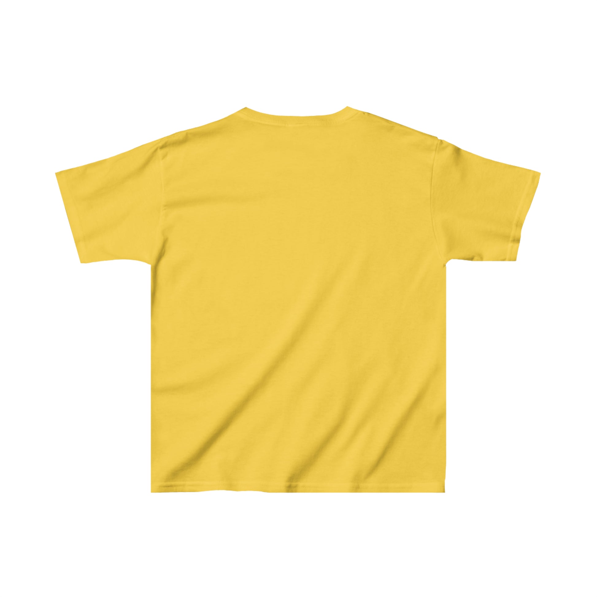 The kids heavy cotton tee is perfect for everyday use. The fabric is 100% cotton for solid colors. Polyester is included for heather-color variants. These fabrics are prime materials for printing. The shoulders have twill tape for improved durability. The collar is curl resistant due to ribbed knitting. There are no seams along the sides.