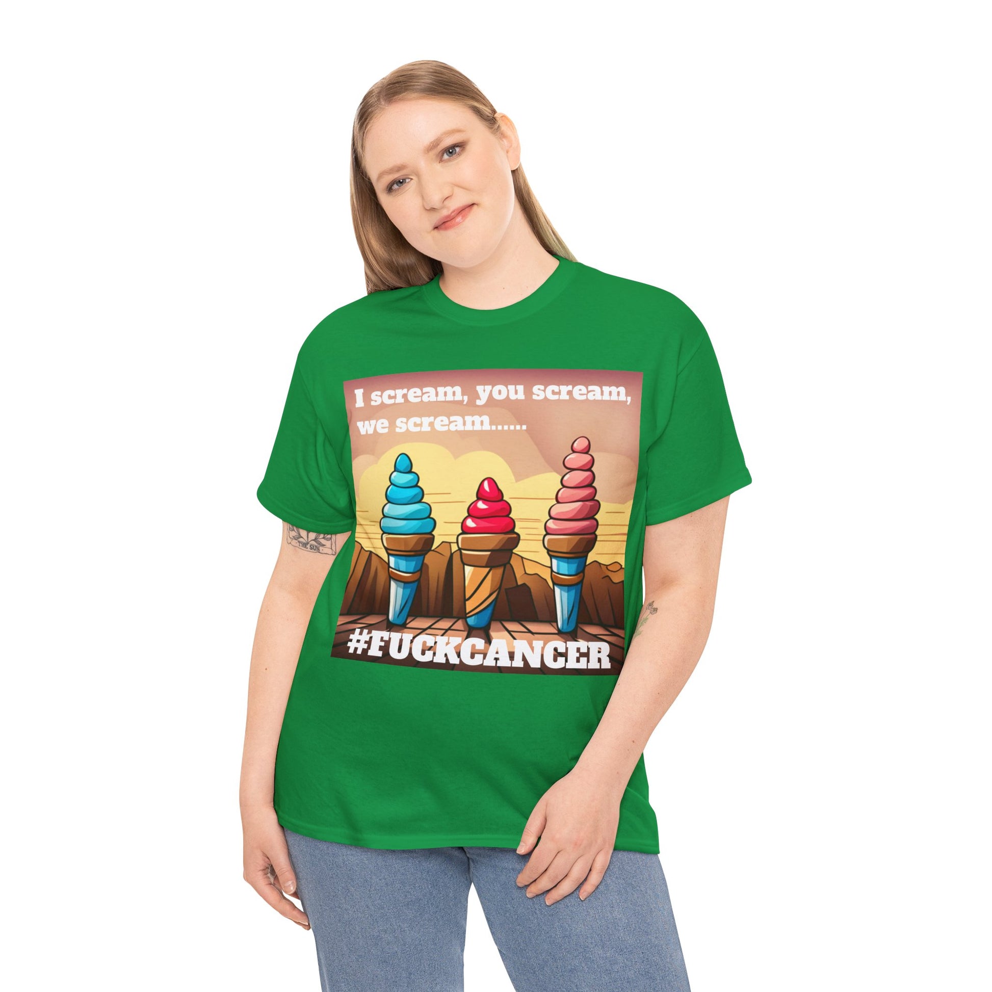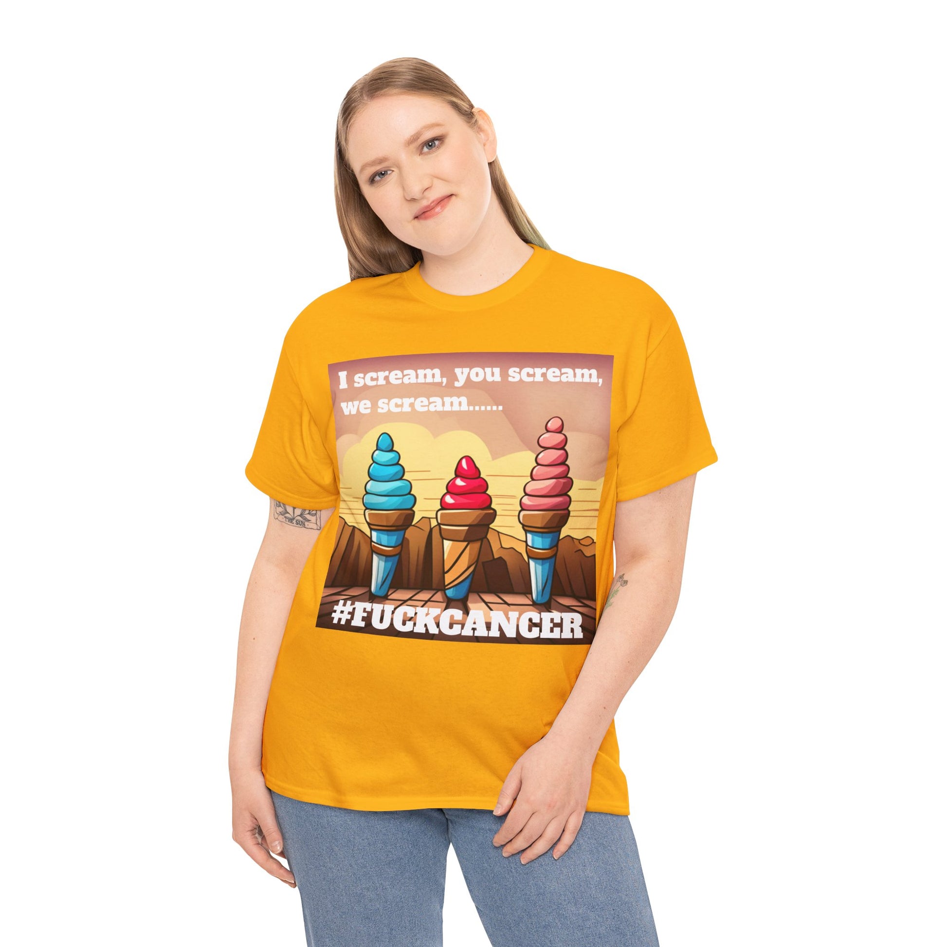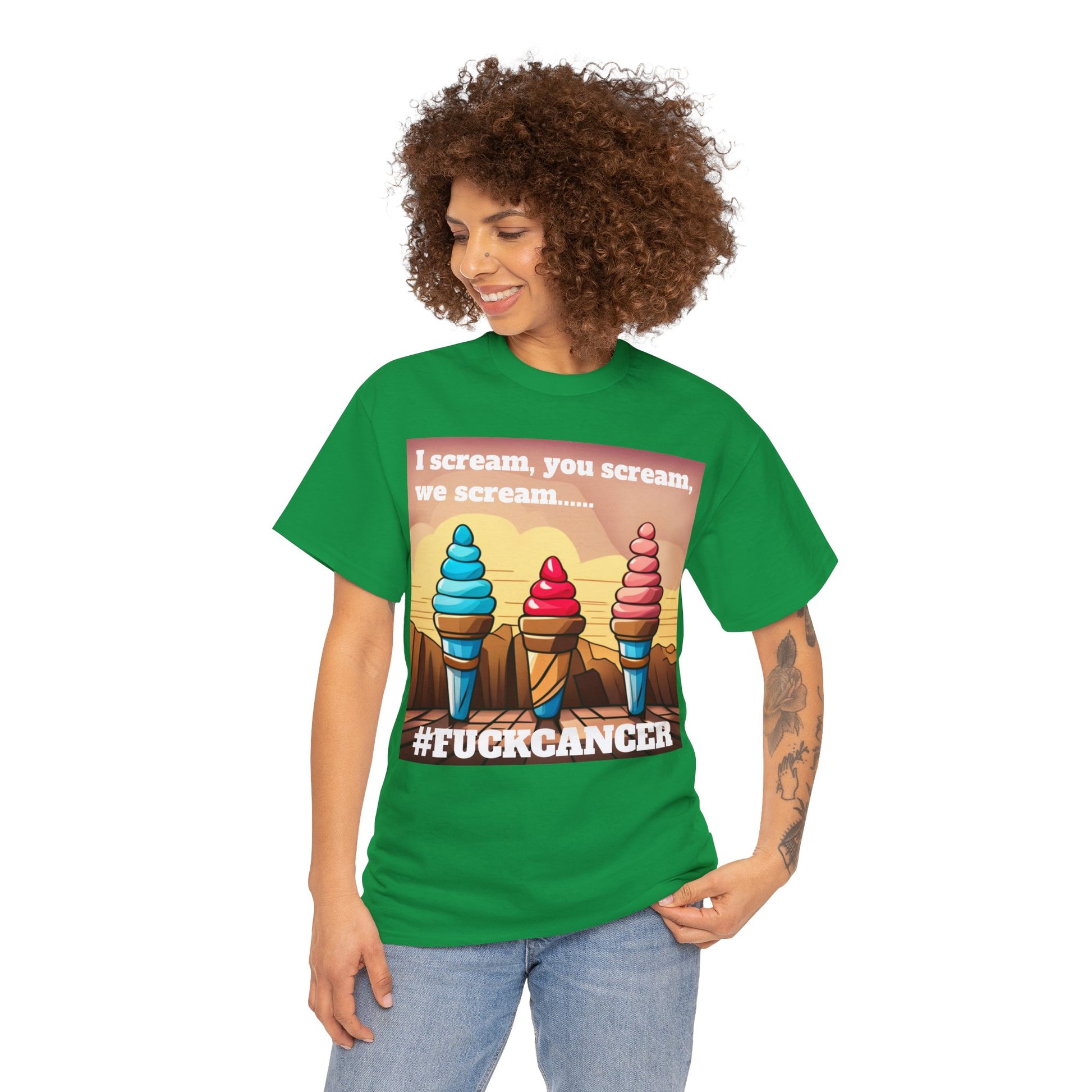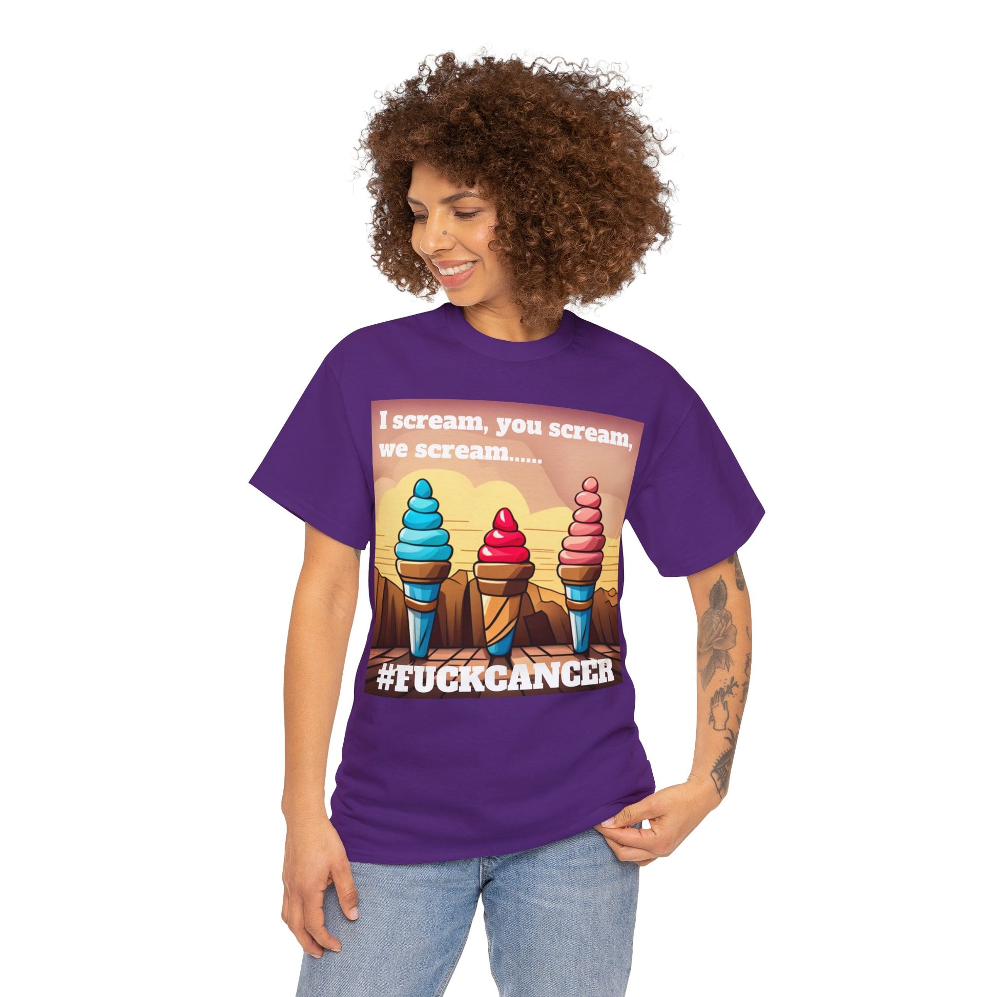 We all scream F*ck cancer Unisex Heavy Cotton Tee
